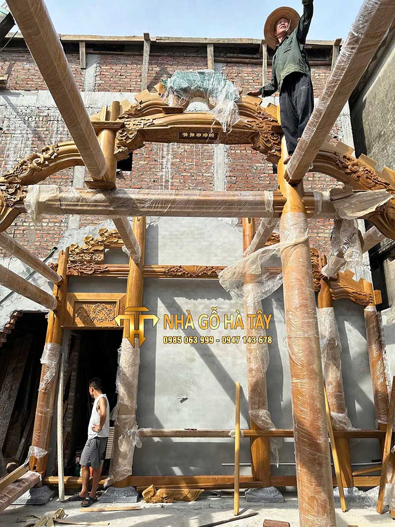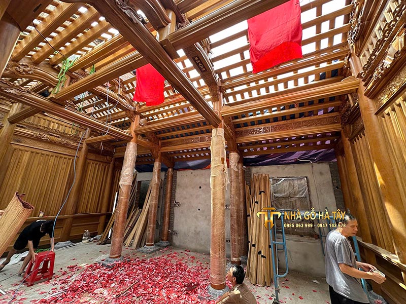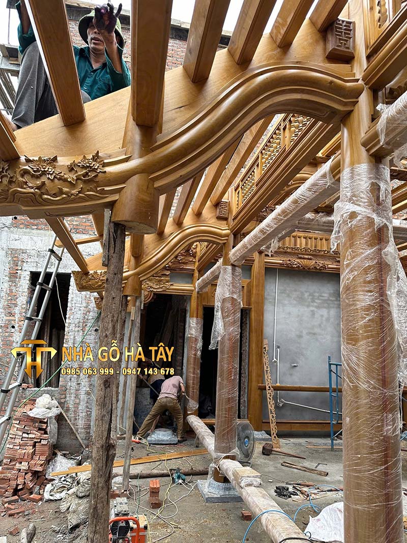 Nhà gỗ 3 gian 2 chái 36 cột đứng đất Hiên chạy xung quanh Vĩnh Tiến Vĩnh bảo Hải Phòng