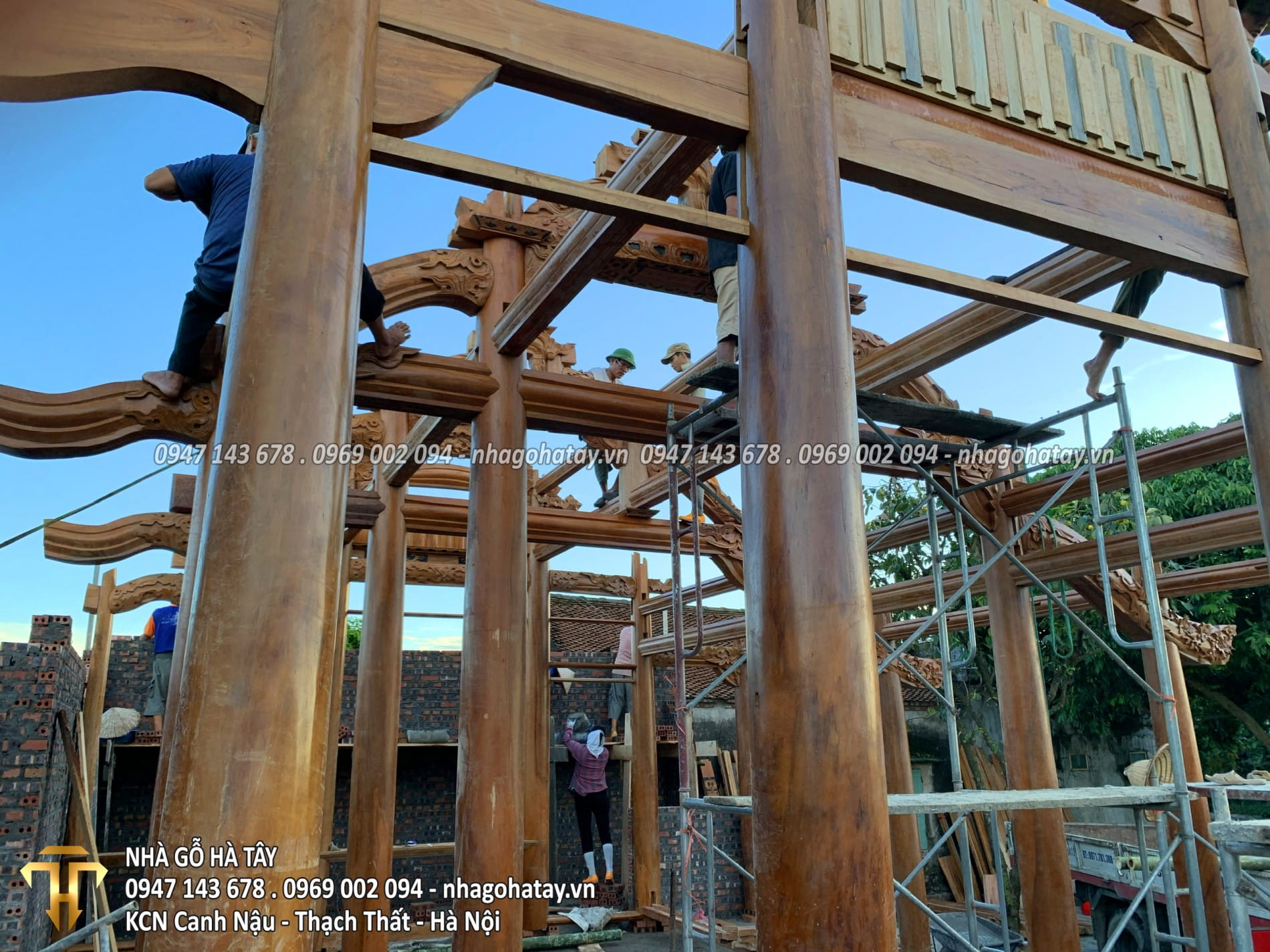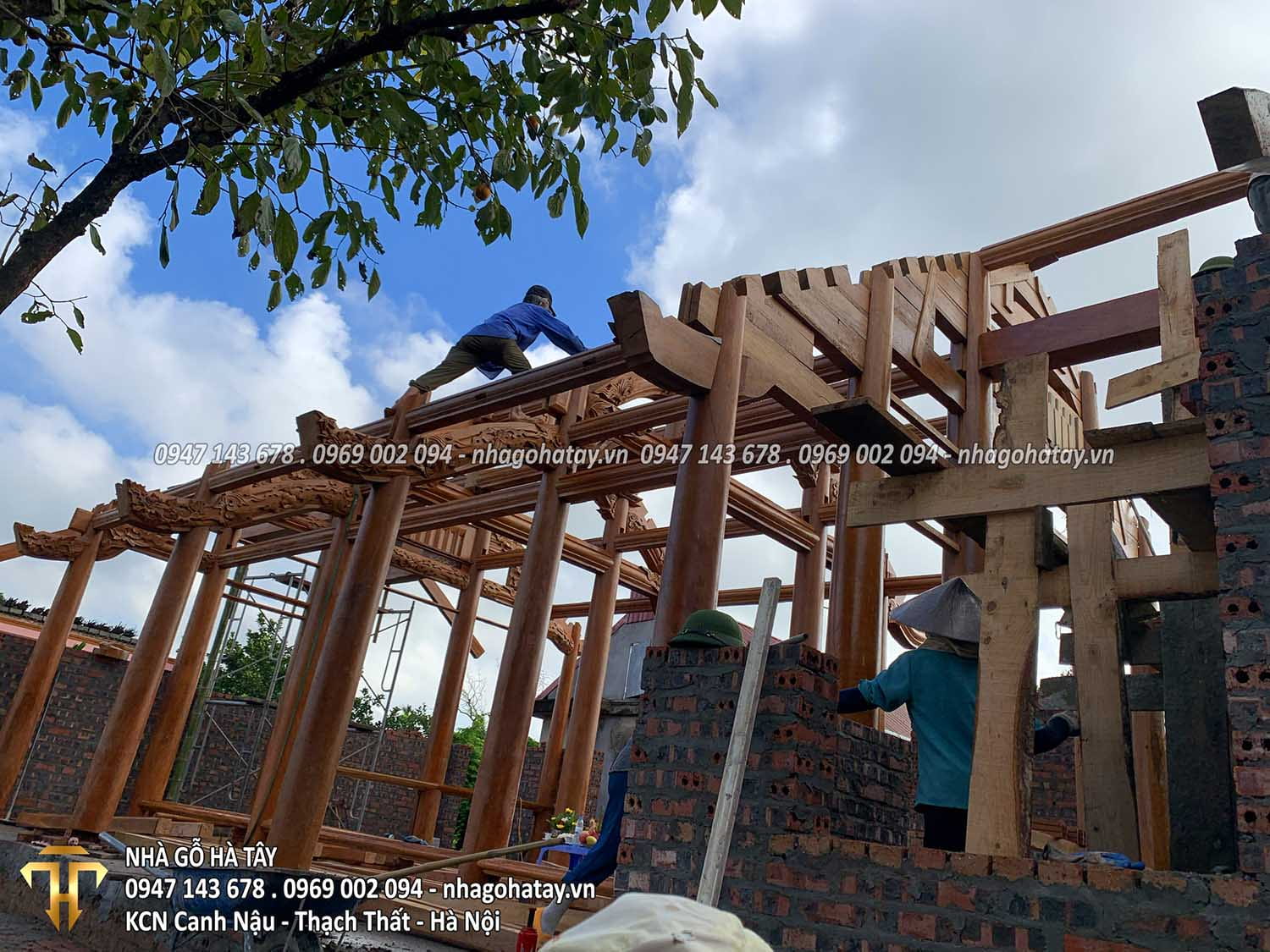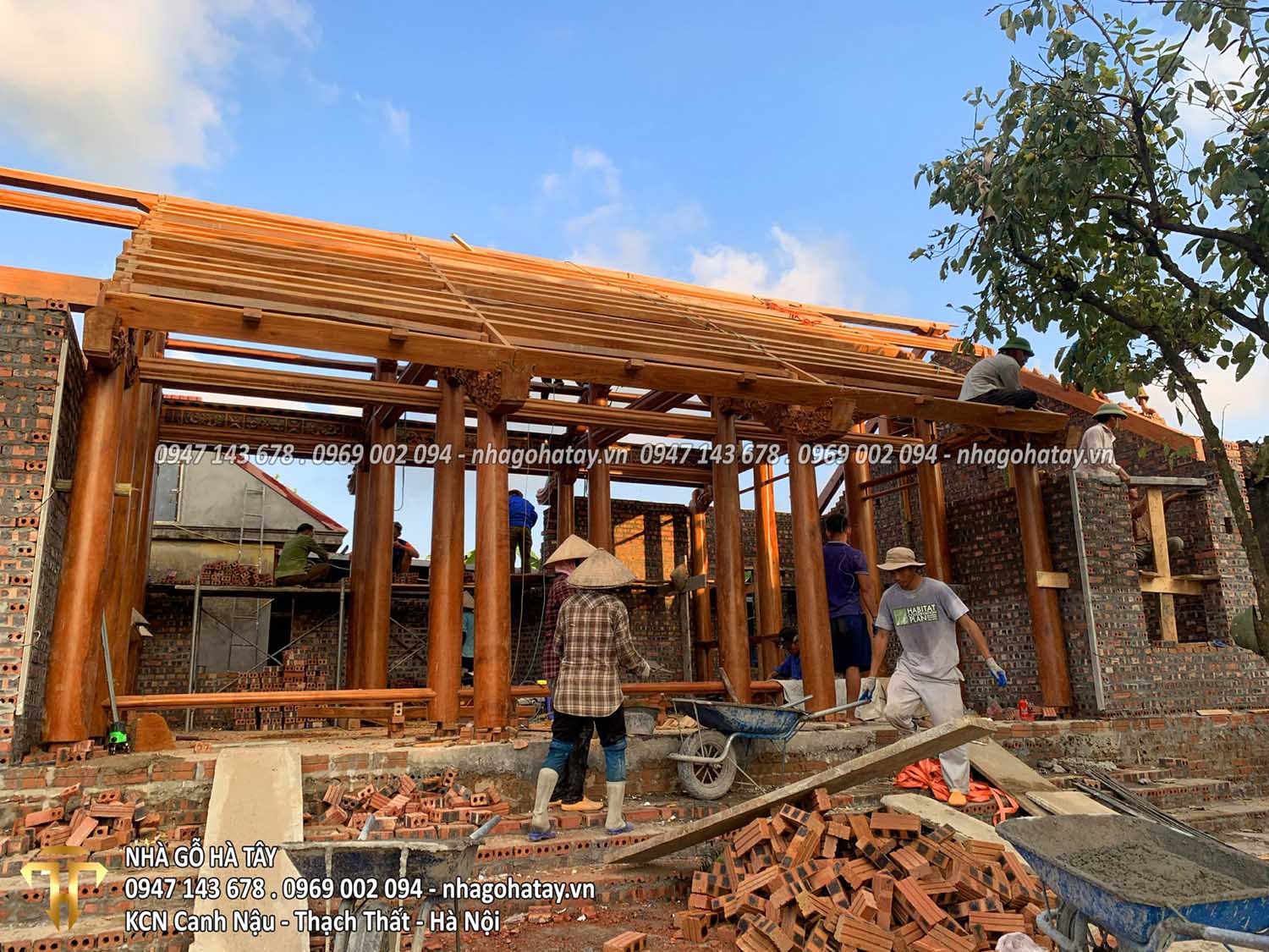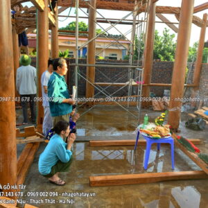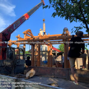 Cùng xem một số hình ảnh trong quá trình thi công Ngôi nhà 3 gian gỗ lim tại Hà Nội của Nhà Gỗ Hà Tây