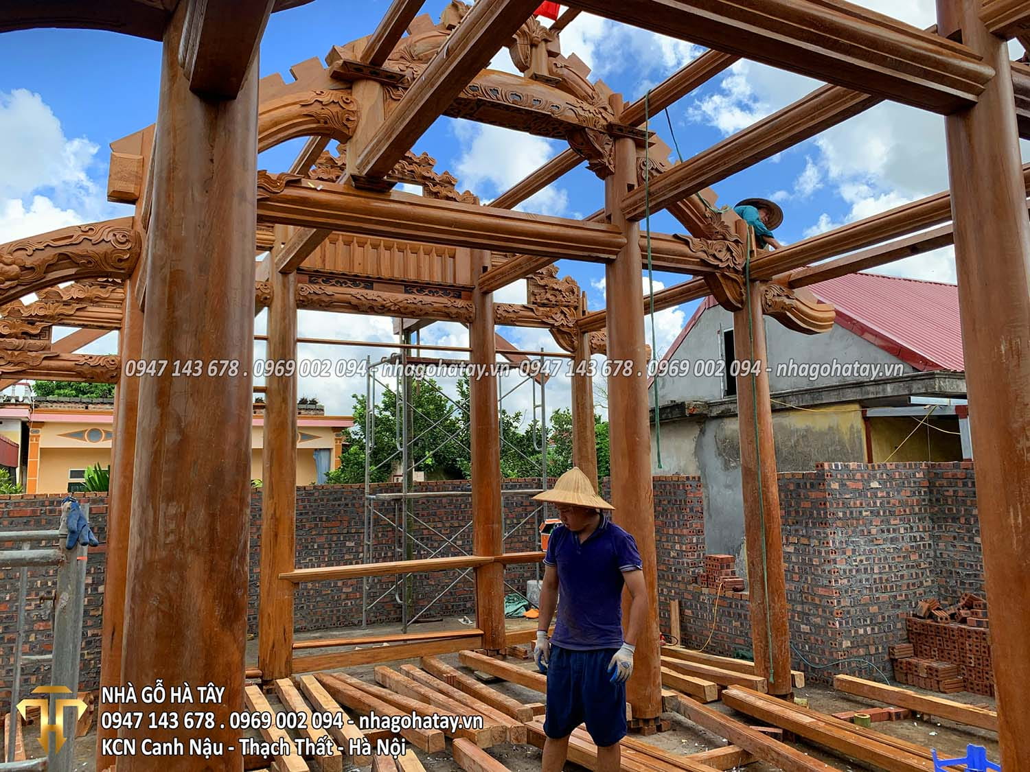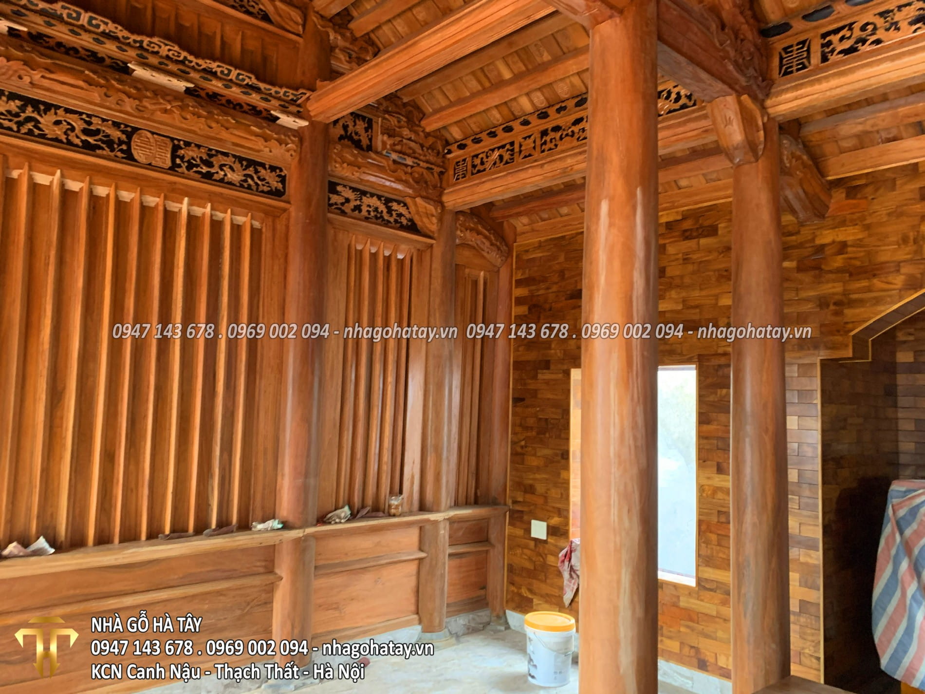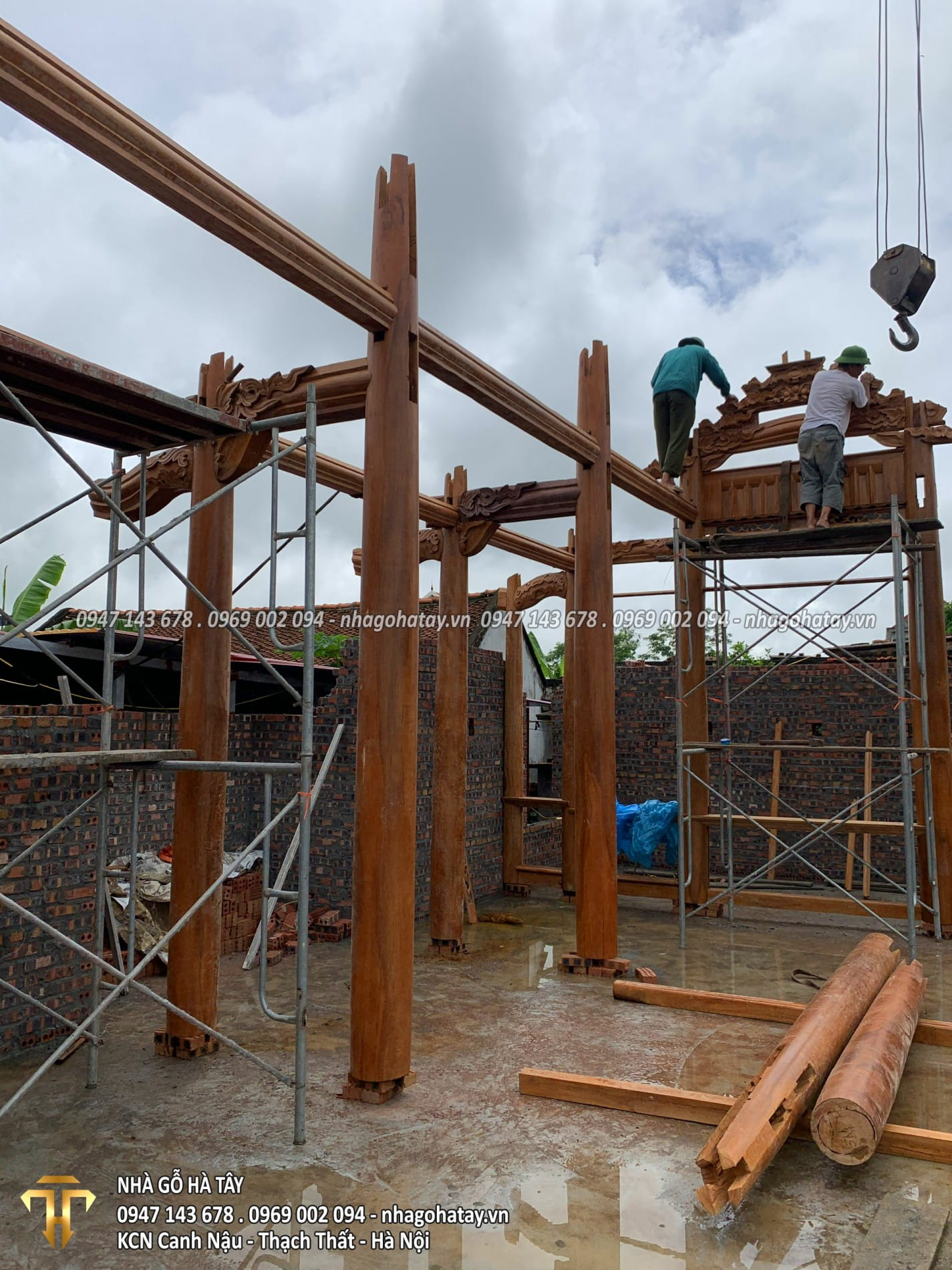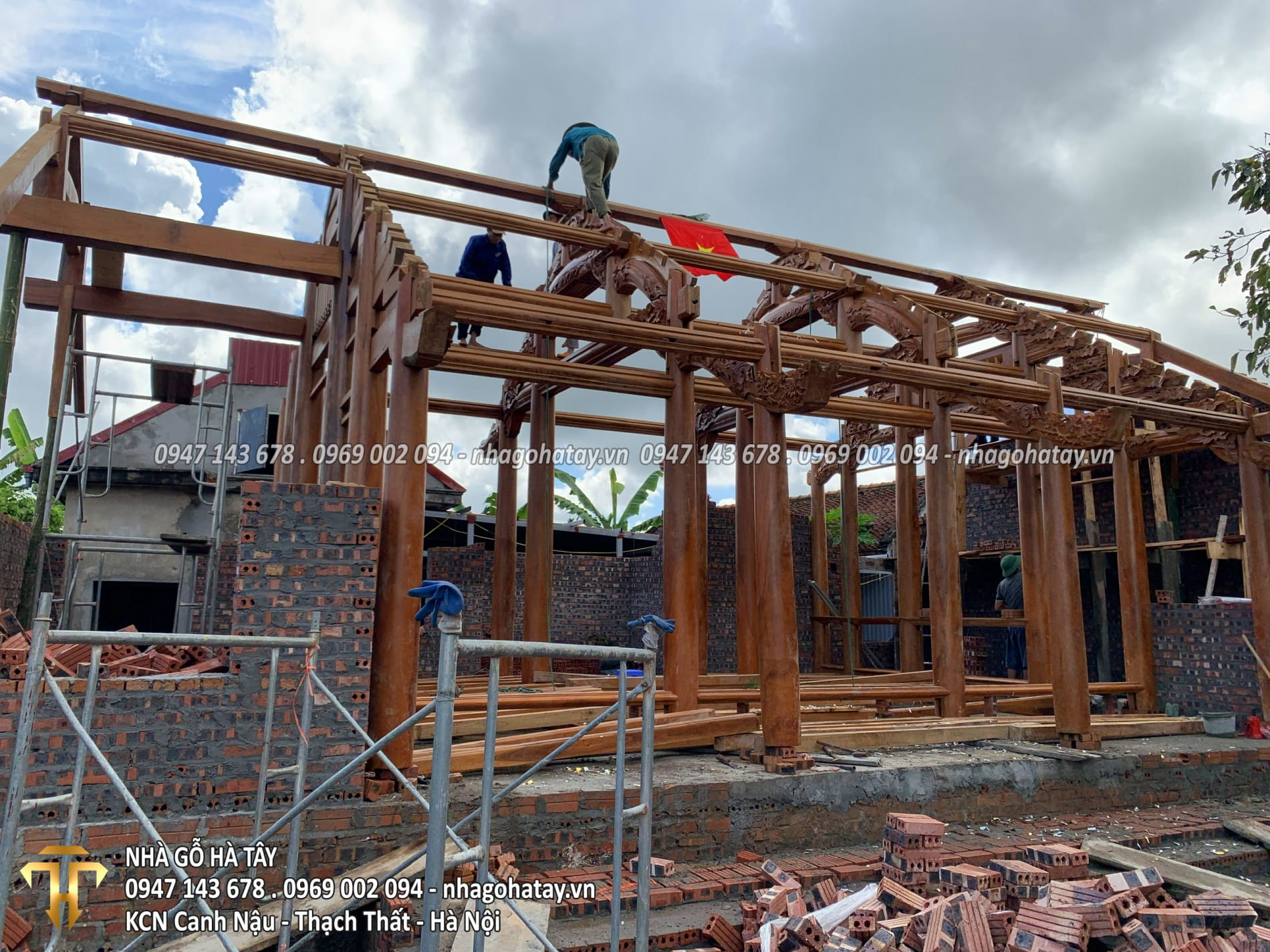 Cùng xem một số hình ảnh trong quá trình thi công Ngôi nhà 3 gian gỗ lim tại Hà Nội của Nhà Gỗ Hà Tây