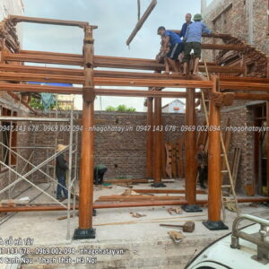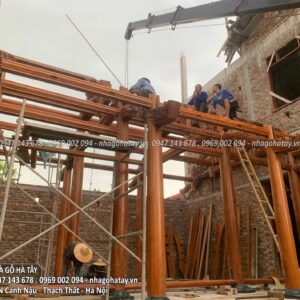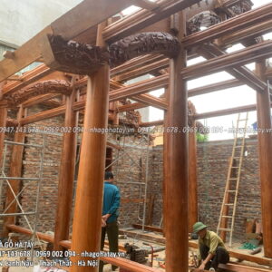 Cùng xem một số hình ảnh trong quá trình thi công Ngôi nhà 3 gian gỗ lim tại Hà Nội của Nhà Gỗ Hà Tây