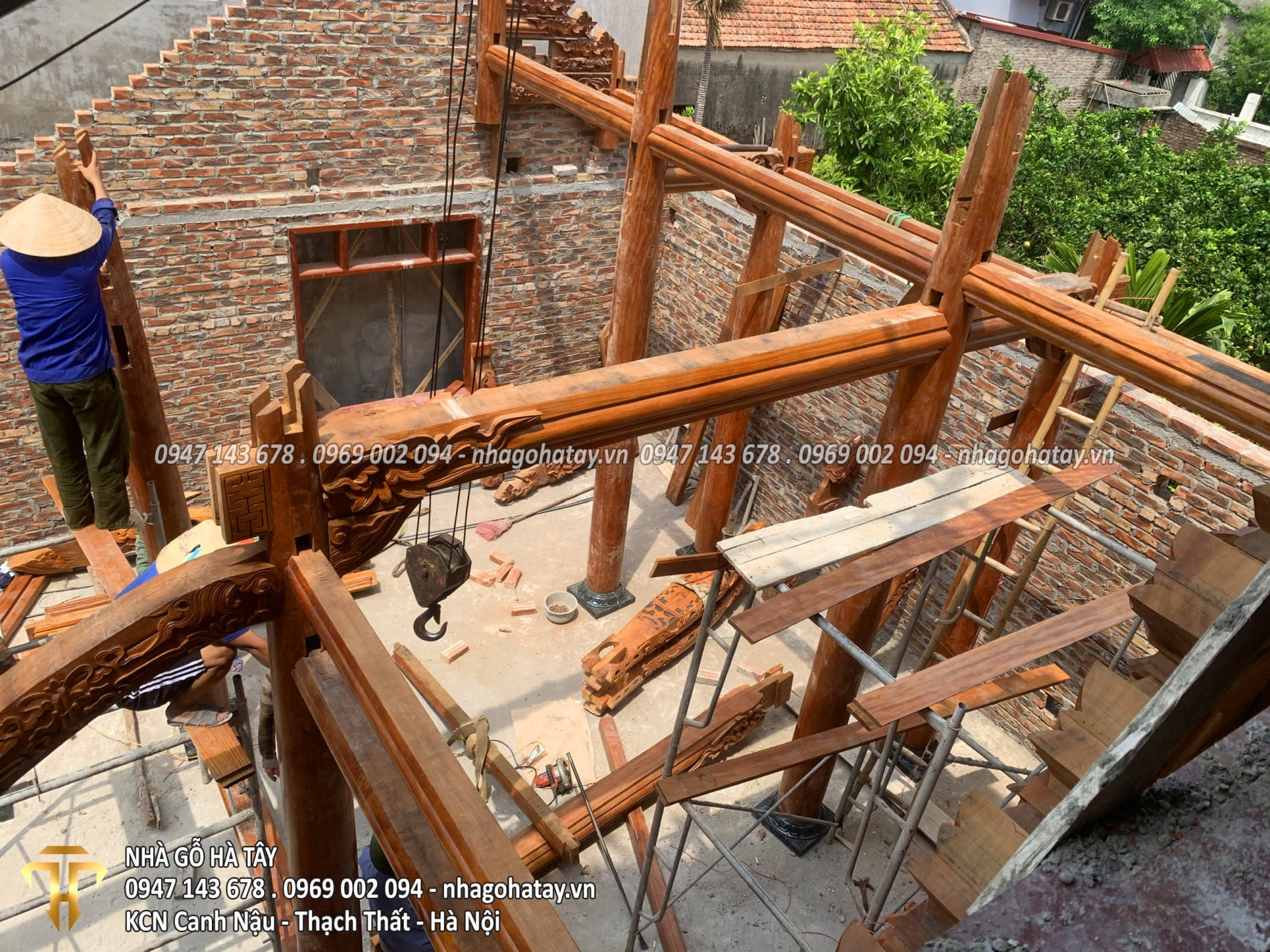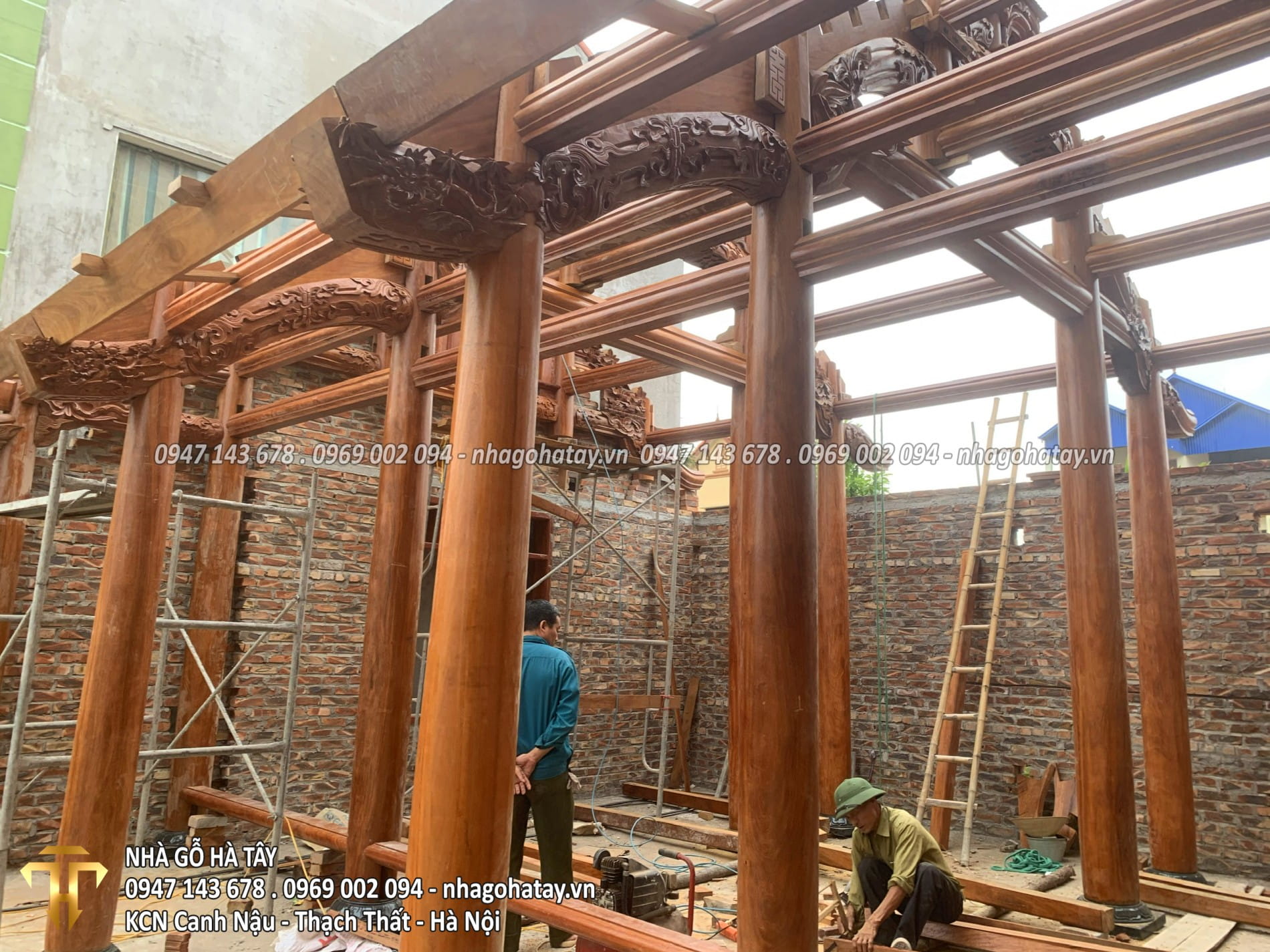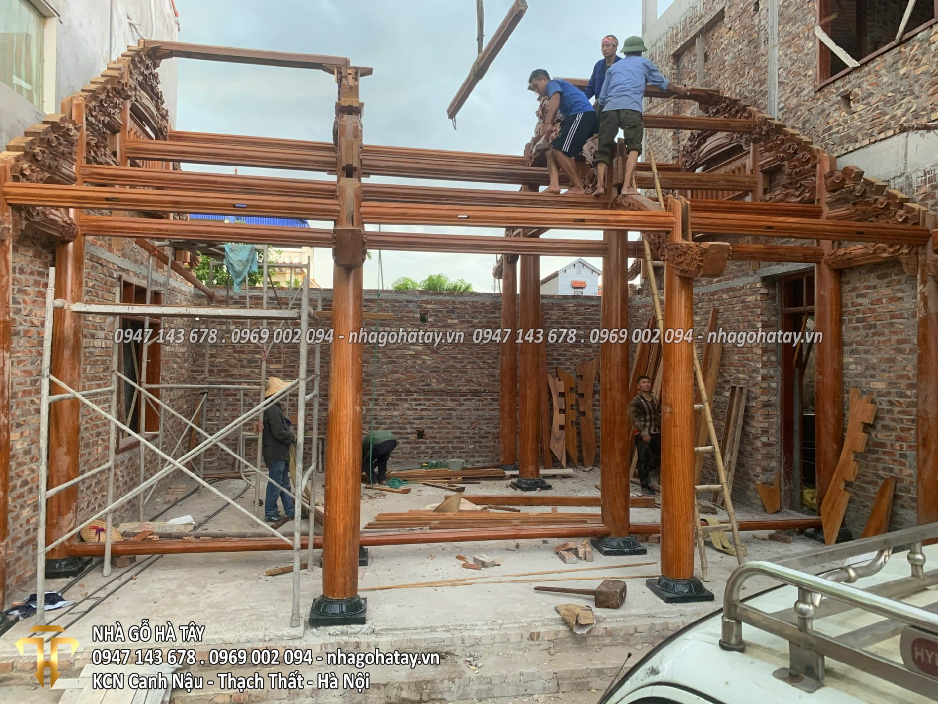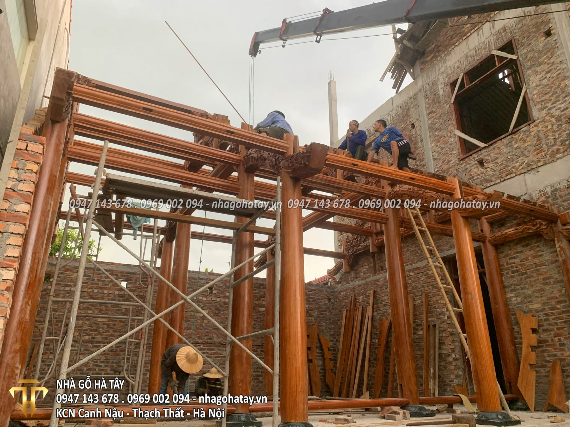 Cùng xem một số hình ảnh trong quá trình thi công Ngôi nhà 3 gian gỗ lim tại Hà Nội của Nhà Gỗ Hà Tây