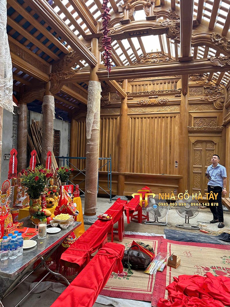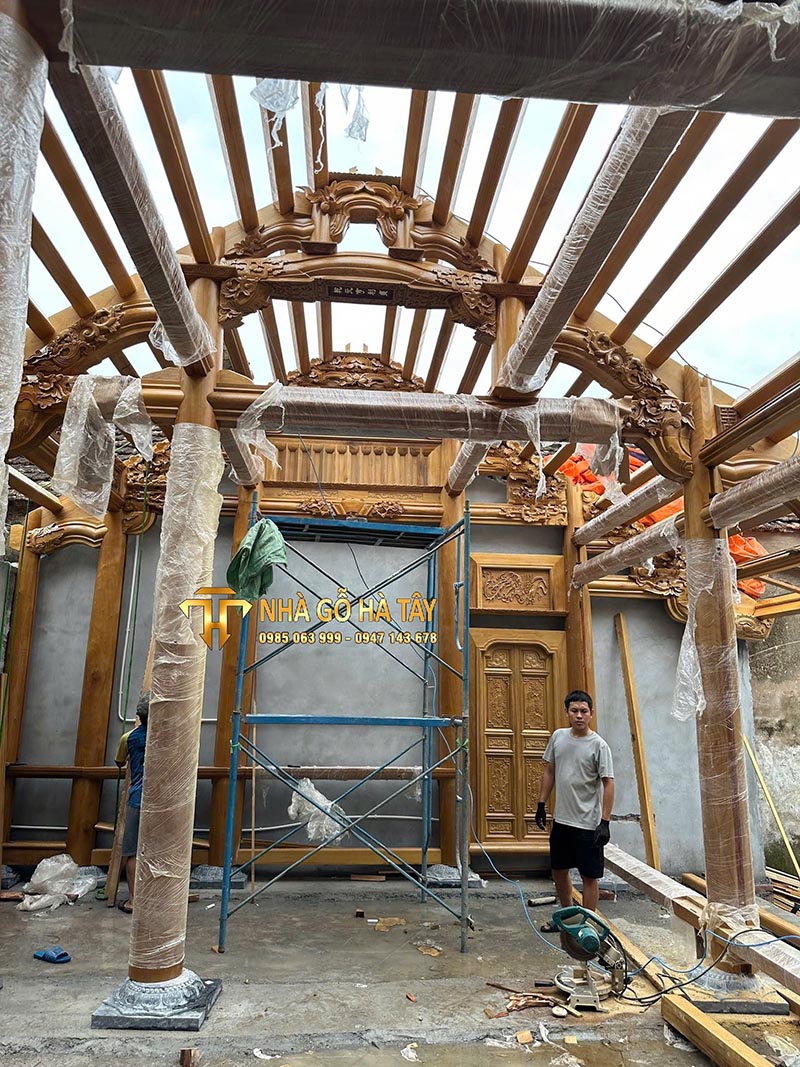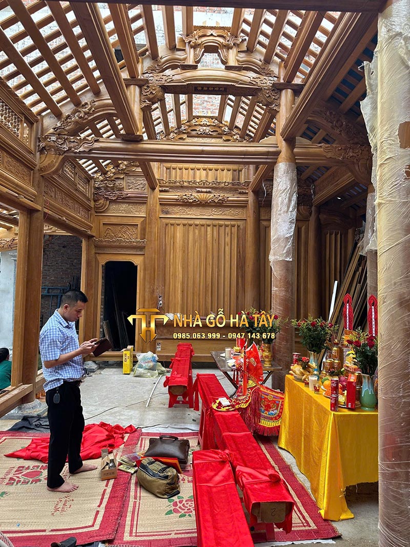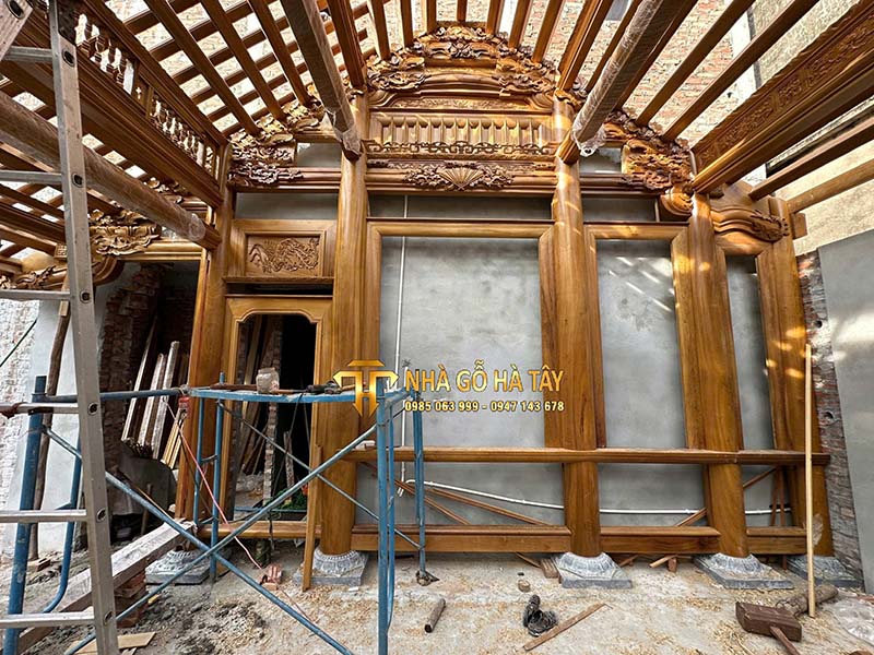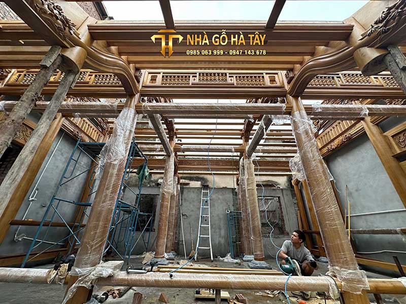 Hình ảnh thi công công trình nhà gỗ 3 gian dổi lào:
