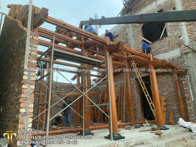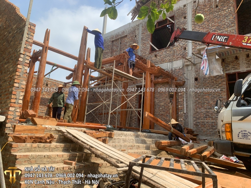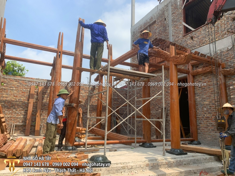 Cùng xem một số hình ảnh trong quá trình thi công Ngôi nhà 3 gian gỗ lim tại Hà Nội của Nhà Gỗ Hà Tây