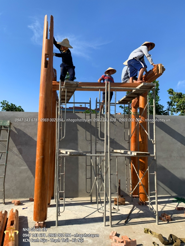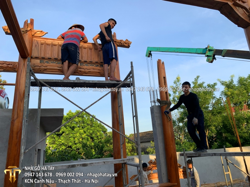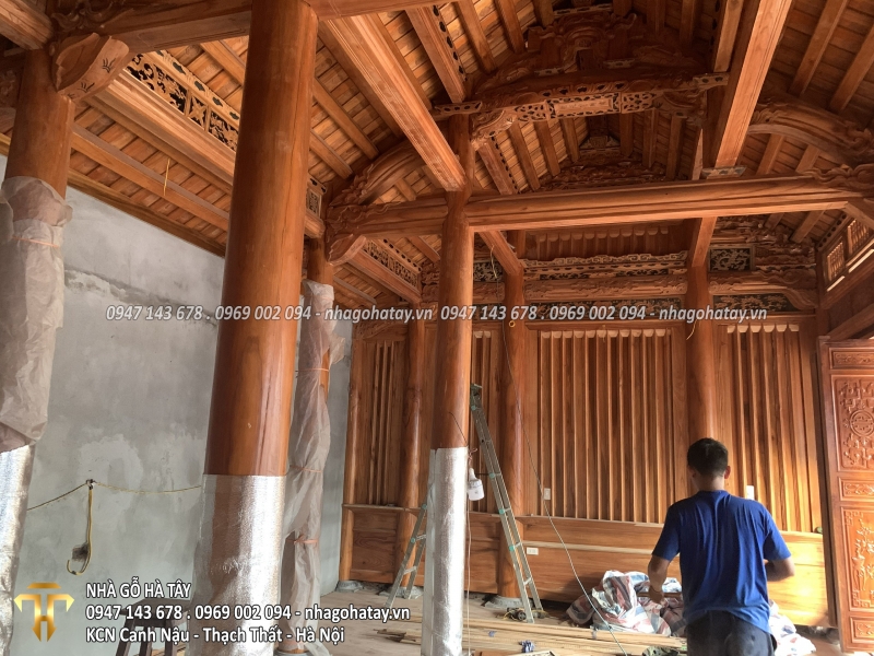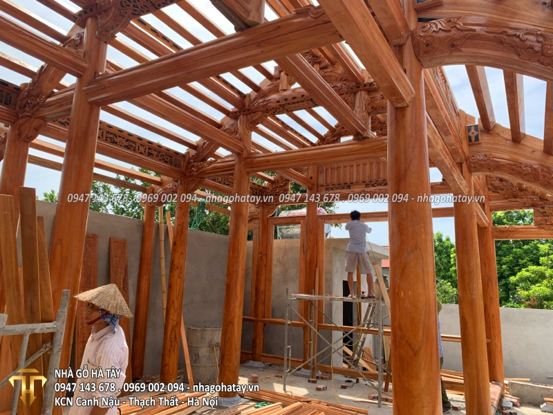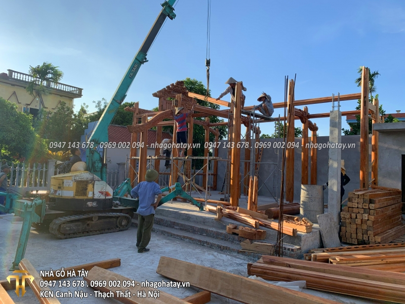 Cùng xem một số hình ảnh trong quá trình thi công Ngôi nhà 3 gian gỗ lim tại Hà Nội của Nhà Gỗ Hà Tây